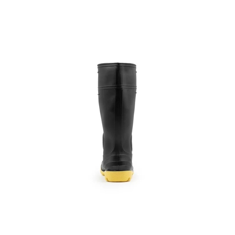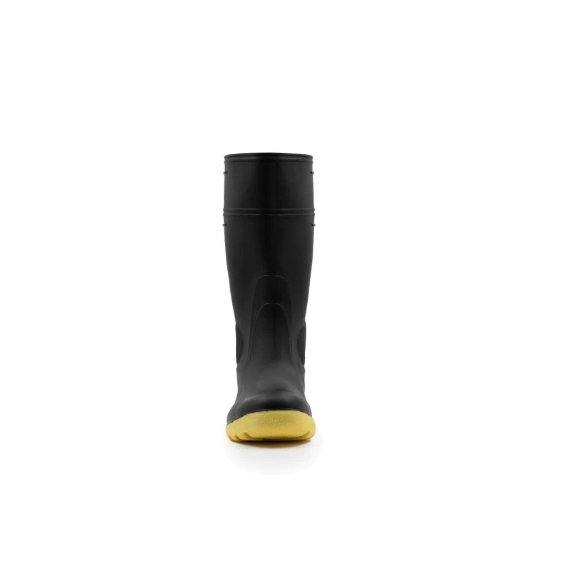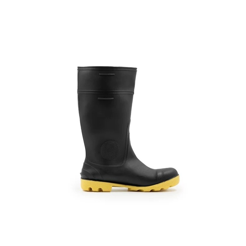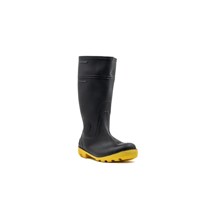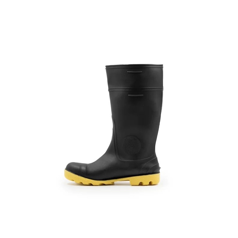 Bota Minera de policloruro de vinilo, con refuerzo en el tobillo y talón, fabricada bajo el proceso de inyección, con alma interna de poliéster y puntera de acero.