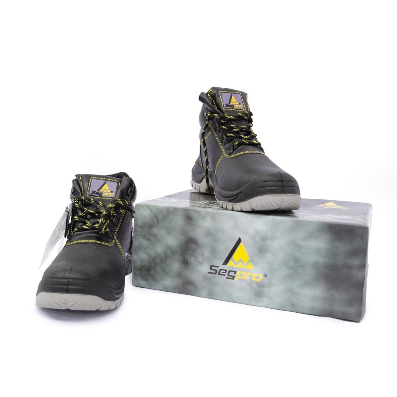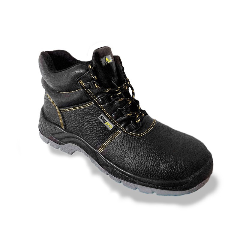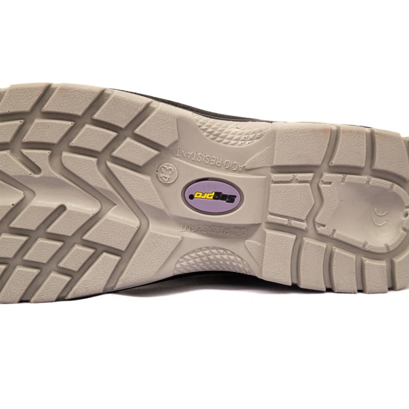 Calzado de seguridad cómodo y liviano, fabricado bajo sistema de inyección directa sobre el corte, con plantilla antiperforante y puntera de acero, suela de PU-Bidensidad, antideslizante y resistente a hidrocarburos.