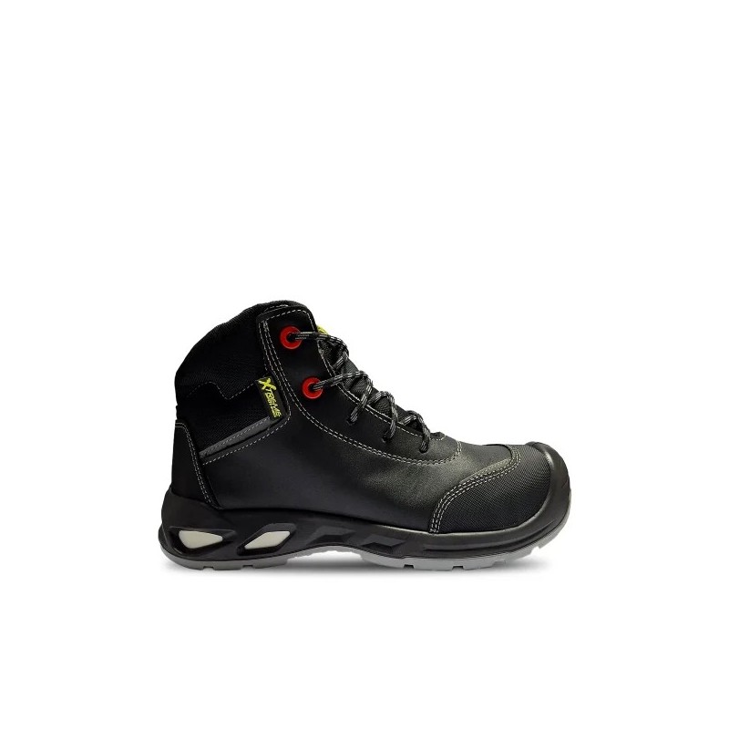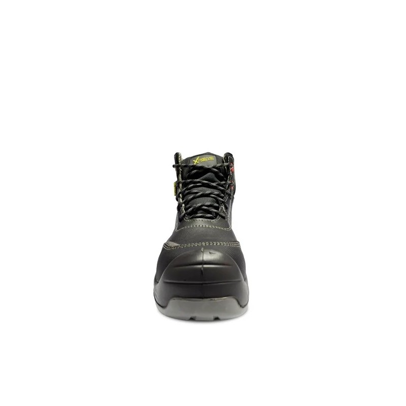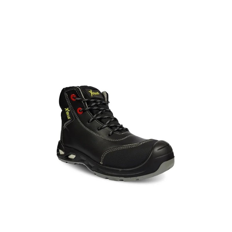 Calzado de seguridad XTREME fabricado en cuero vacuno, diseñado para brindar protección, confort y durabilidad en el sector industrial. Cuenta con forro de tela mesh antibacterial y acolchado ergonómico de microfibra para mayor comodidad. Incorpora suela de poliuretano bidensidad antiestática, resistente a aceites e hidrocarburos, con excelente tracción. Incluye plantilla removible antibacterial de PU, palmilla anticlavos no metálica y puntera plástica resistente a impactos y compresión. Sus ojalillos plásticos y pasadores de poliéster aseguran un ajuste seguro. Es resistente a la abrasión, desgarro, flexión, tracción, penetración, absorción de agua y cuenta con protección antiestática. Altura aproximada: 16 cm. Color negro.