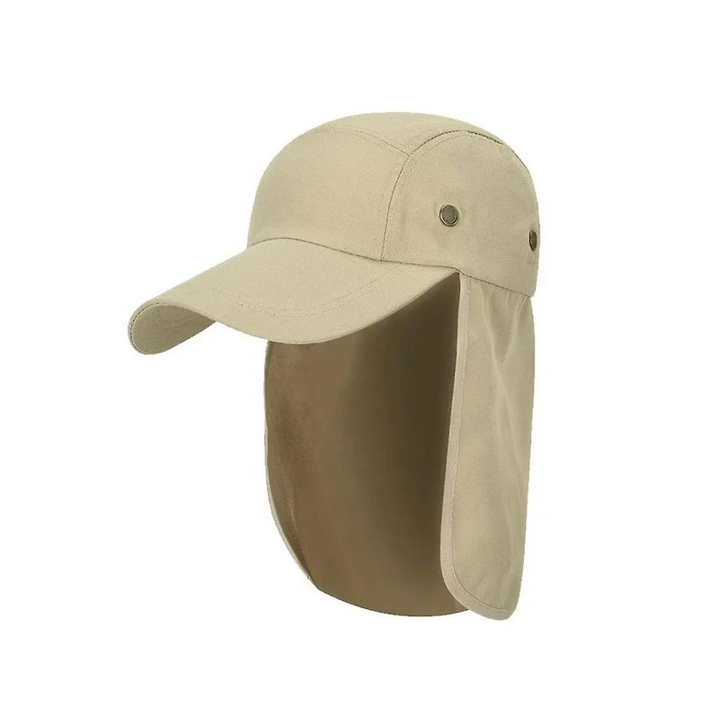 Sombrero de protección solar fabricado en lienzo, ligero, transpirable y de secado rápido. Cuenta con ala ancha de 12 cm y cortina protectora de 21 cm que bloquean la luz solar de forma multidireccional, protegiendo eficazmente la piel. Incorpora orificios de ventilación con malla para mayor frescura y comodidad. Su diseño es estable y resistente al viento, con cordón elástico ajustable que se adapta a tallas de cabeza entre 55 y 60 cm. Es compacto, fácil de transportar y almacenar. Ideal para actividades al aire libre como pesca, senderismo, camping, ciclismo, jardinería y viajes. Apto para hombres y mujeres. Disponible en colores gris, verde, beige y negro.