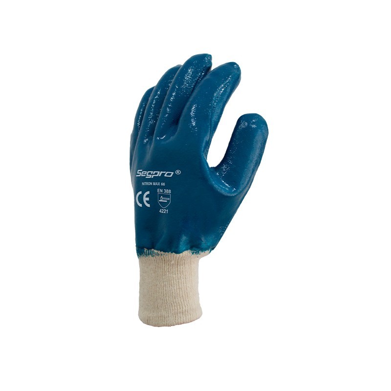 - Acabado: Guante fabricado en nitrilo color azul al 100% sobre forro de punto Jersey con capa interior suave y puño tejido de seguridad.