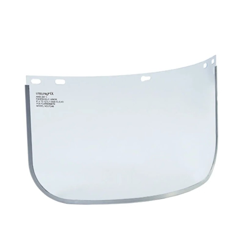 Visor facial de diseño ergonómico que brinda protección total del rostro frente a riesgos como ácidos, quemaduras, abrasión y chispas. Fabricado en policarbonato de 1 mm de espesor, ofrece alta resistencia al impacto y a líquidos irritantes o corrosivos, además de contar con filtro UV para mayor seguridad. Disponible con o sin filo de aluminio. Dimensiones: 39 × 20 cm. Peso: 106 g sin filo y 130 g con filo de aluminio. Debe utilizarse junto con casquete o adaptador portavisor para casco. Ideal como complemento de protección facial en diversos trabajos industriales.